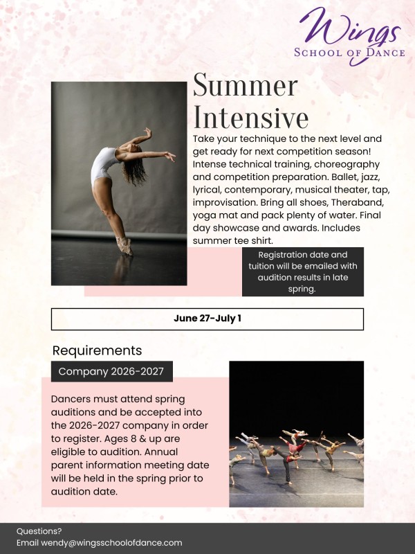 One-time Annual Registration Fee = $55.00 due prior to your child’s first dance lesson. Additional siblings residing at same address charged $30.00. Fee per family not to exceed $100.00. Wings School of Dance offers a tiered tuition rate for students taking multiple dance classes. The tiered tuition rate applies to 60-minute classes: • 1 class per week = $90.00 per month • 2nd class per week = $85.00 per month • 3rd class per week = $80.00 per month • 4th class per week = $75.00 per month • 5th class per week = $70.00 per month • 6+ classes per week = $400 unlimited classes per month